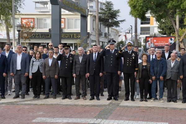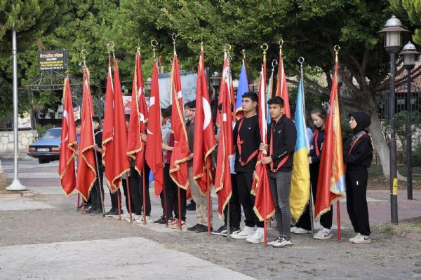 Törende; ilçe protokolü, kamu kurum ve kuruluşlarının temsilcileri, siyasi parti başkanları, sivil toplum kuruluşları, okul müdürleri, öğretmenler ve öğrenciler bayrak ve flamalar eşliğinde hazır bulundu.