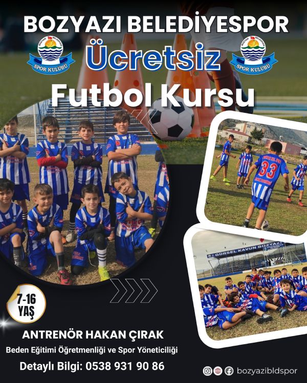 Bozyazı Belediyespor, ilçedeki gençlere yönelik önemli bir sosyal sorumluluk projesini hayata geçiriyor. Kulüp, 7–16 yaş arası çocuk ve gençler için ücretsiz futbol kursu başlattığını duyurdu.