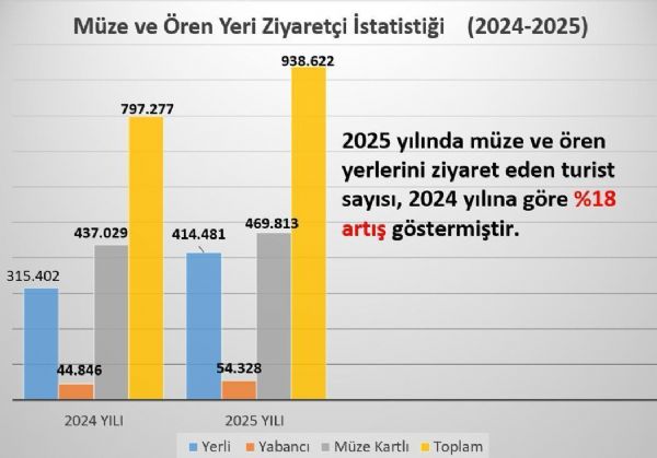 Öte yandan, 2025 yılı içerisinde müze ve ören yerlerini ziyaret eden turist sayısı, önceki yıla göre yüzde 18 oranında artış gösterdi.